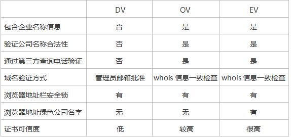 DV證書(shū)只提供域名驗(yàn)證,可信度較低。OV證書(shū)提供公司驗(yàn)證,即提供企業(yè)名稱信息、公司名稱合法性驗(yàn)證,可通過(guò)第三方查詢電話驗(yàn)證。