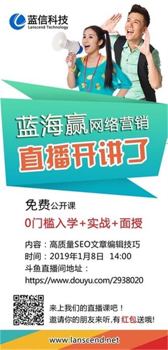 2019年1月8日14:00-14:40 網上在線直播培訓, 直播培訓的網址是: https://www.douyu.com/2938020。
